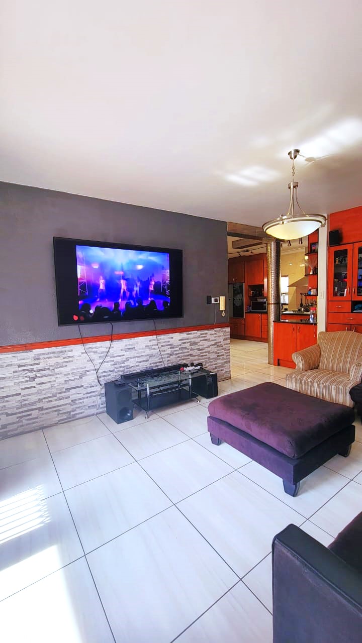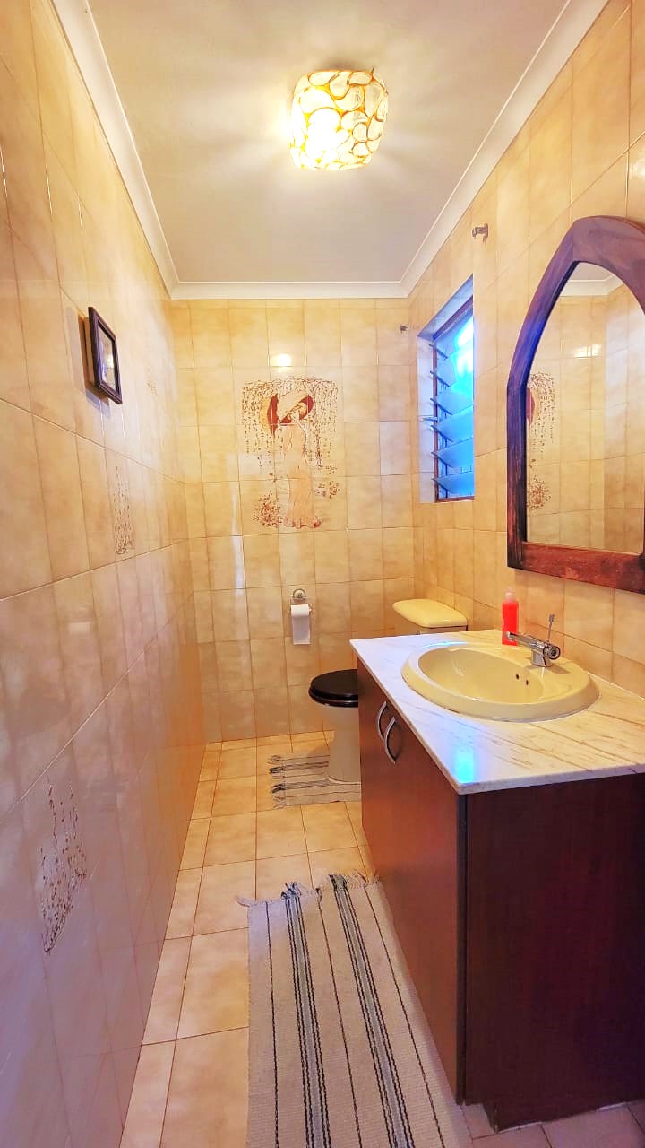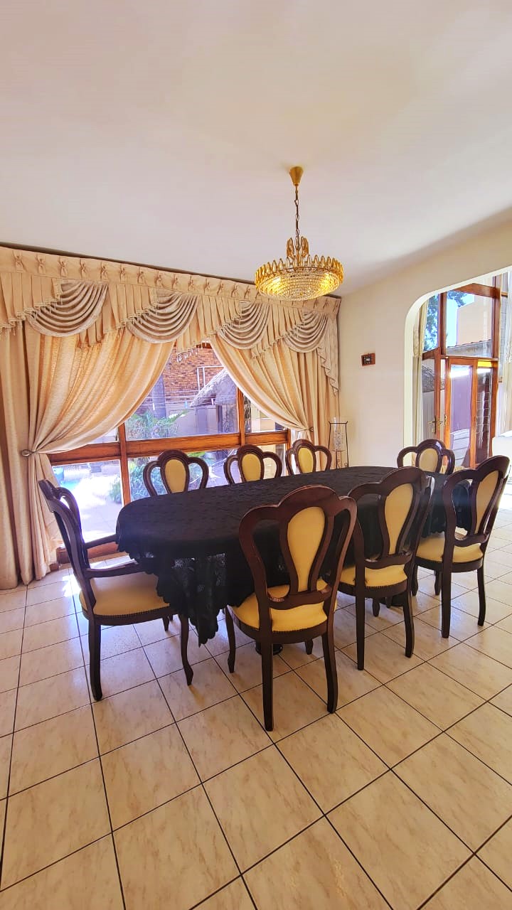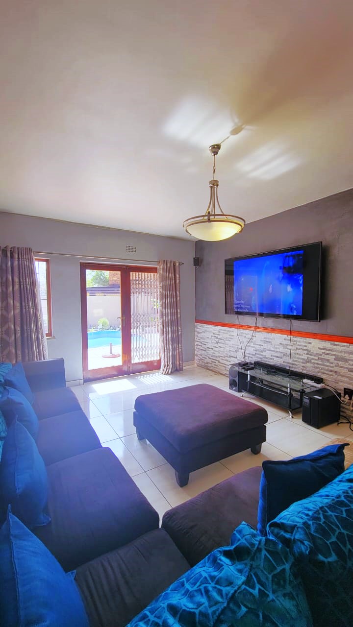 Upon entrance, the home graces us with a spacious open plan design with elegant finishes throughout the property. The lounge is spacious with beautiful designs and a lovely chandelier that gives a unique look.