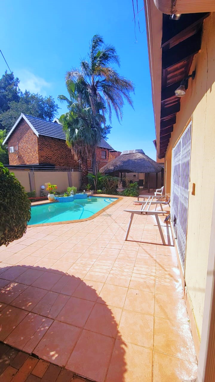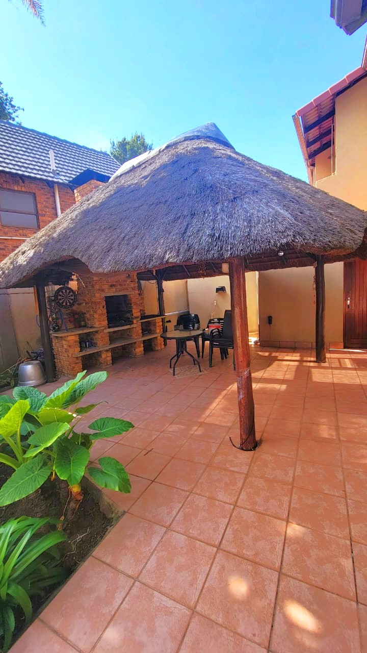 The lounge and TV room has sliding doors that leads to the entertainment patio with built in braai, well-manicured garden and sparking pool to complete the perfect entertaining area for friends and family.