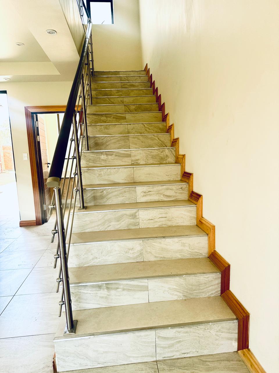 Discover the perfect blend of comfort and convenience in this charming cluster home, designed for modern living. The open-plan lounge seamlessly flows into the dining area, creating a spacious and inviting environment ideal for entertaining or relaxing with family. The kitchen is well-appointed with built-in cupboards, an extractor fan, and a stove/oven, complemented by ample counter space. There is a TV room downstairs, where the family can relax and unwind from the day. There is a convenient visitor’s toilet downstairs.
