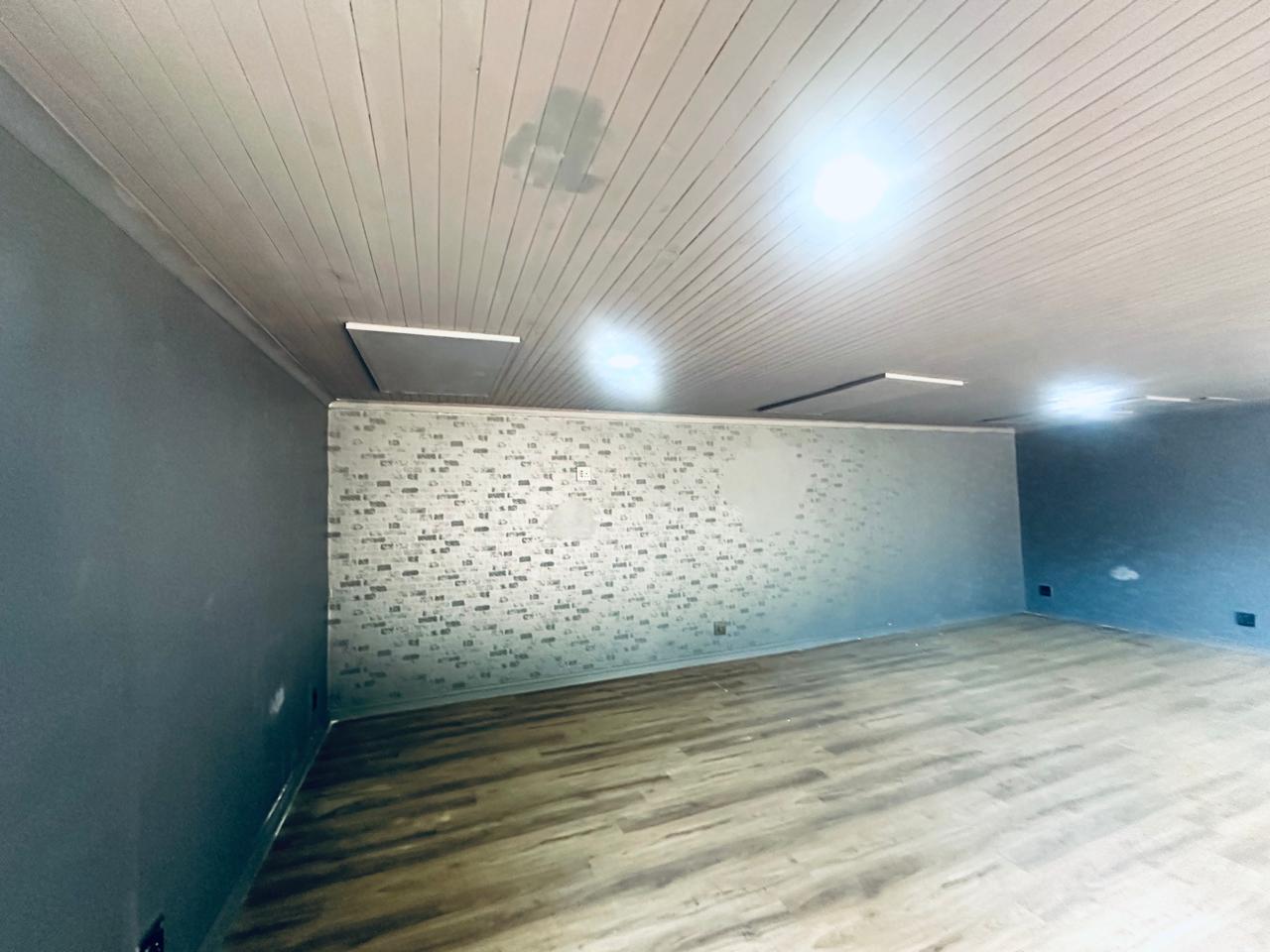 The main building welcomes you into its entrance hallway that leads into the TV room, this leads into the kitchen area. The kitchen has built in cupboards. There are 5 bedrooms, the main bedroom has its own bathroom (toilet, basin, shower and bath). An additional bathroom (toilet, basin and shower) serves the rest of the building. There is tiled flooring throughout the building, making cleaning an easy task.