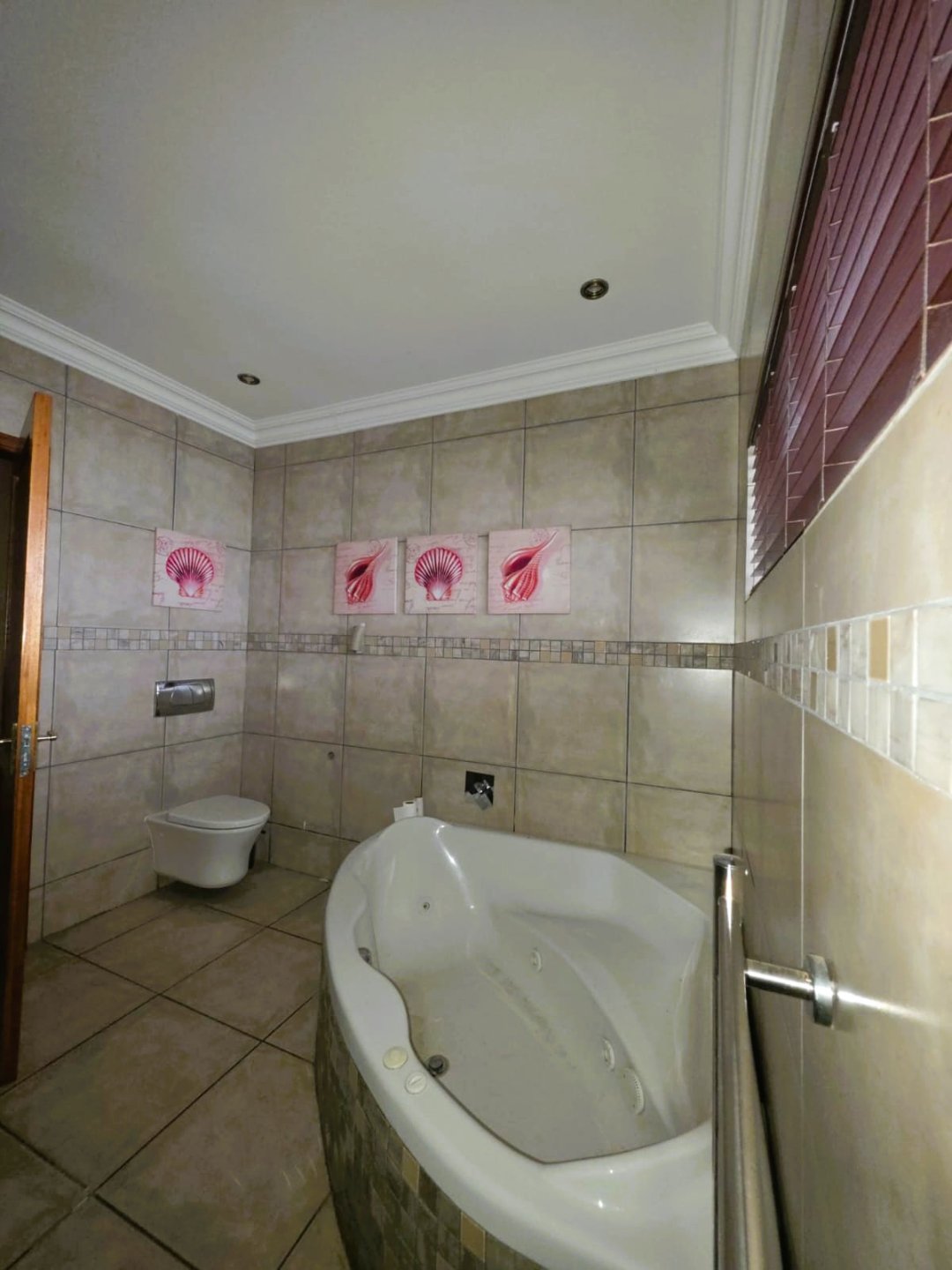 * The main bedroom boasts wooden flooring, a walk-in closet, and a full ensuite bathroom with a double shower and jacuzzi bath.