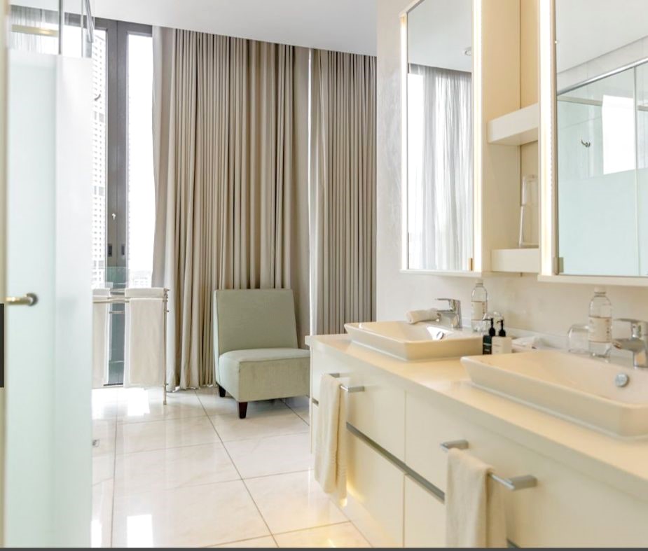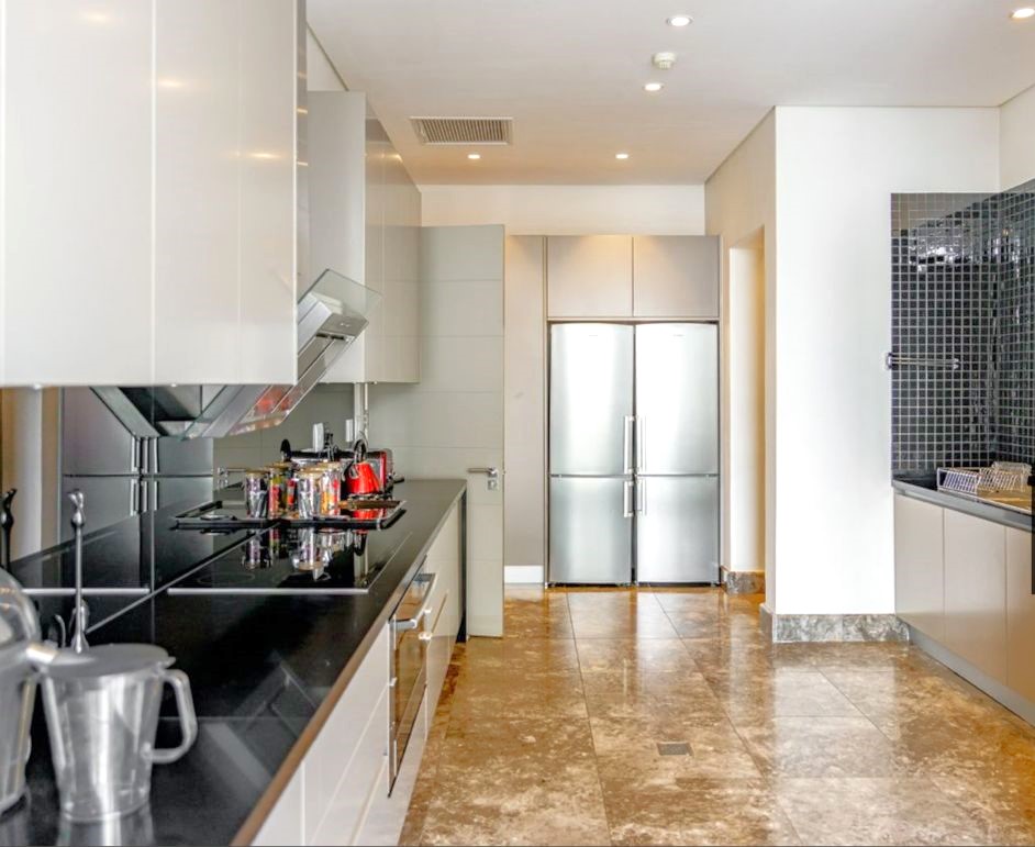 This stunning penthouse is well equipped with a spacious living area, TV room, dinning area with a gourmet kitchen that is central to the penthouse. The gourmet kitchen is equipped with top the line kitchen ware appliances, a wine storage area, magnificent breakfast area, and a separate pantry that has ample storage space. And off course a study area.