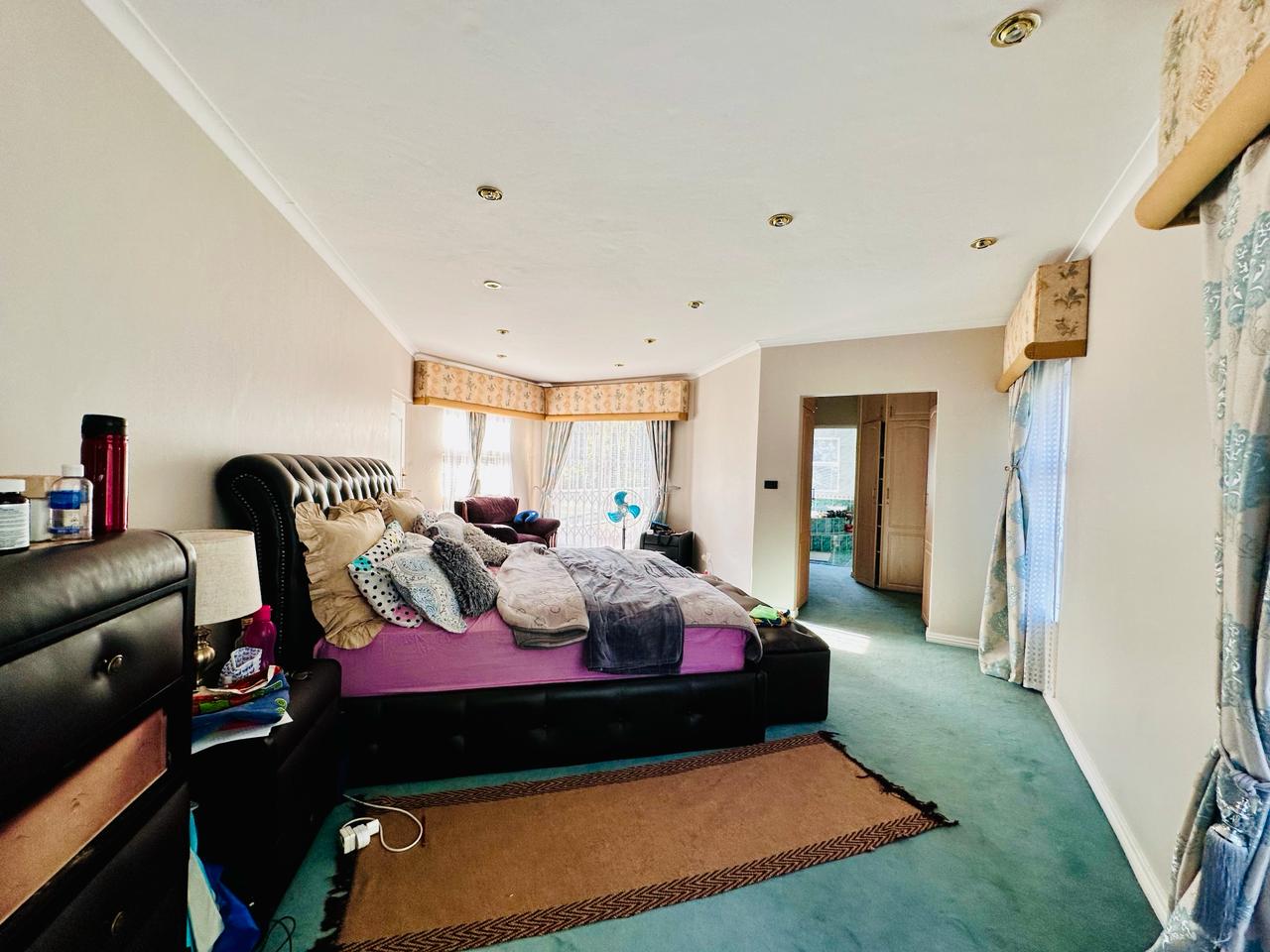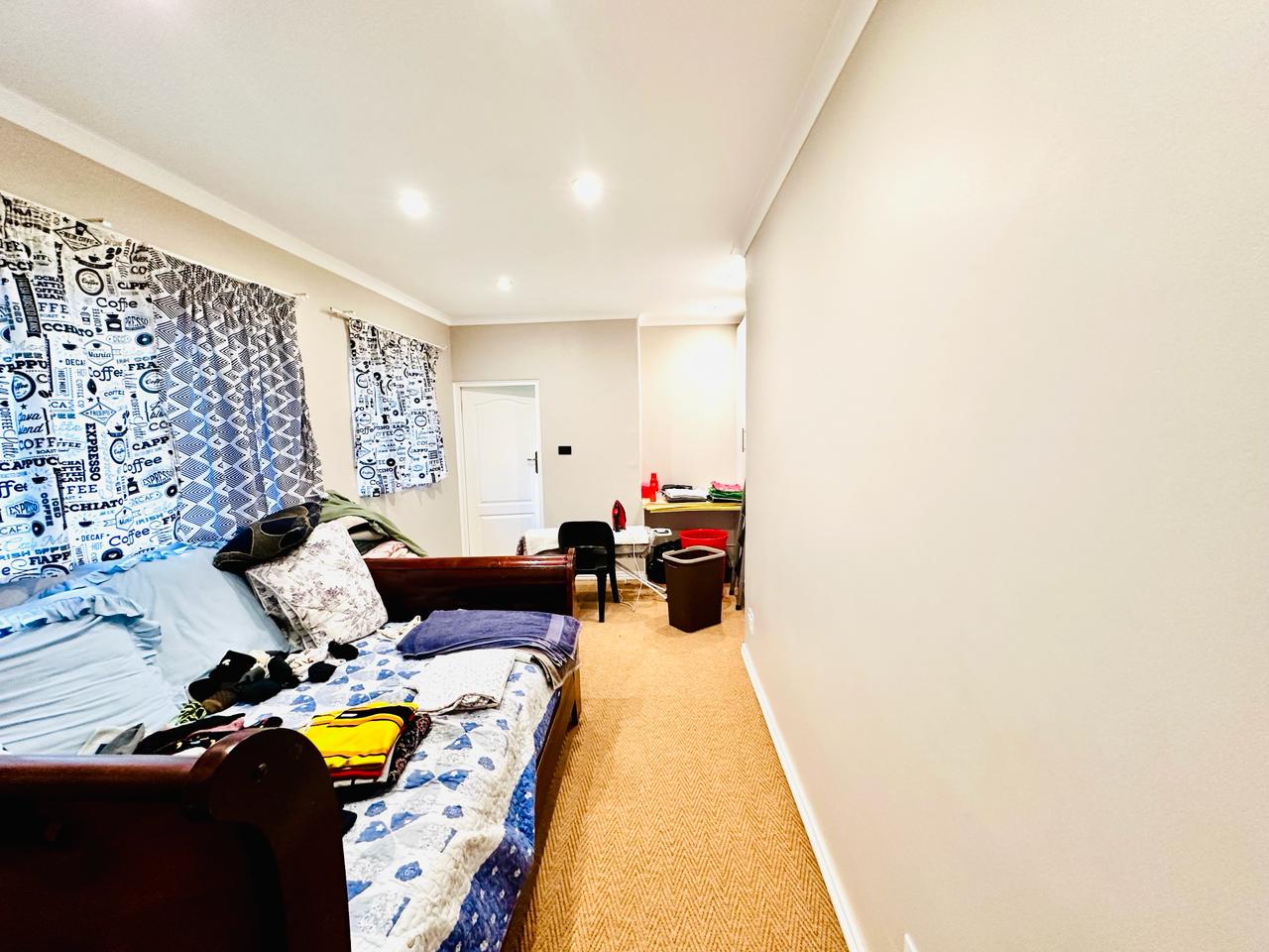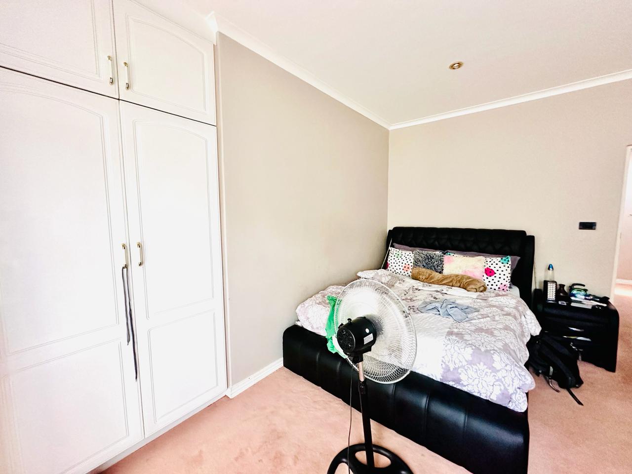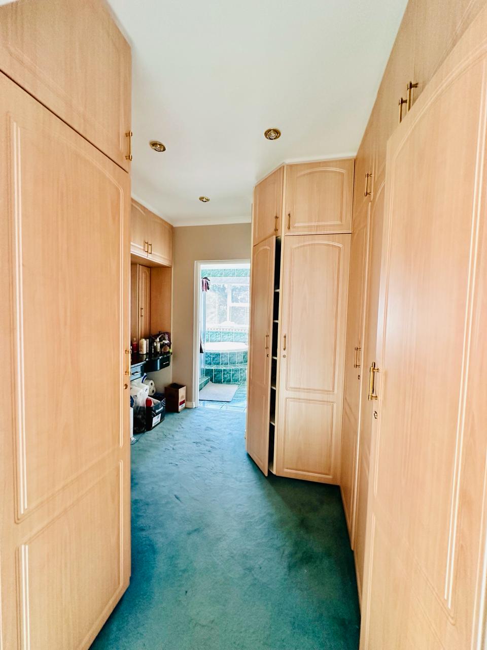 Bedroom 7 is carpeted with built in cupboard.