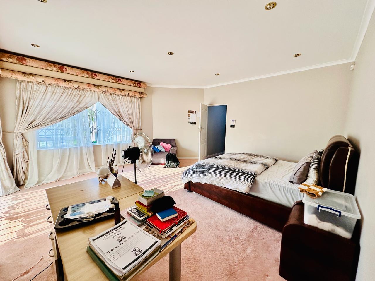 Stepping upstairs, is hallway directing side to one of the master bedrooms, spacious dining area, well finished off kitchen, that has a breakfast nook, built-in cupboards and granite counter tops, as well as a scullery as not to make the kitchen feel so cramped up. Also found in this amazing house is another study / office, this provides a comfortable spot for all that work from home to call their office away from the office.