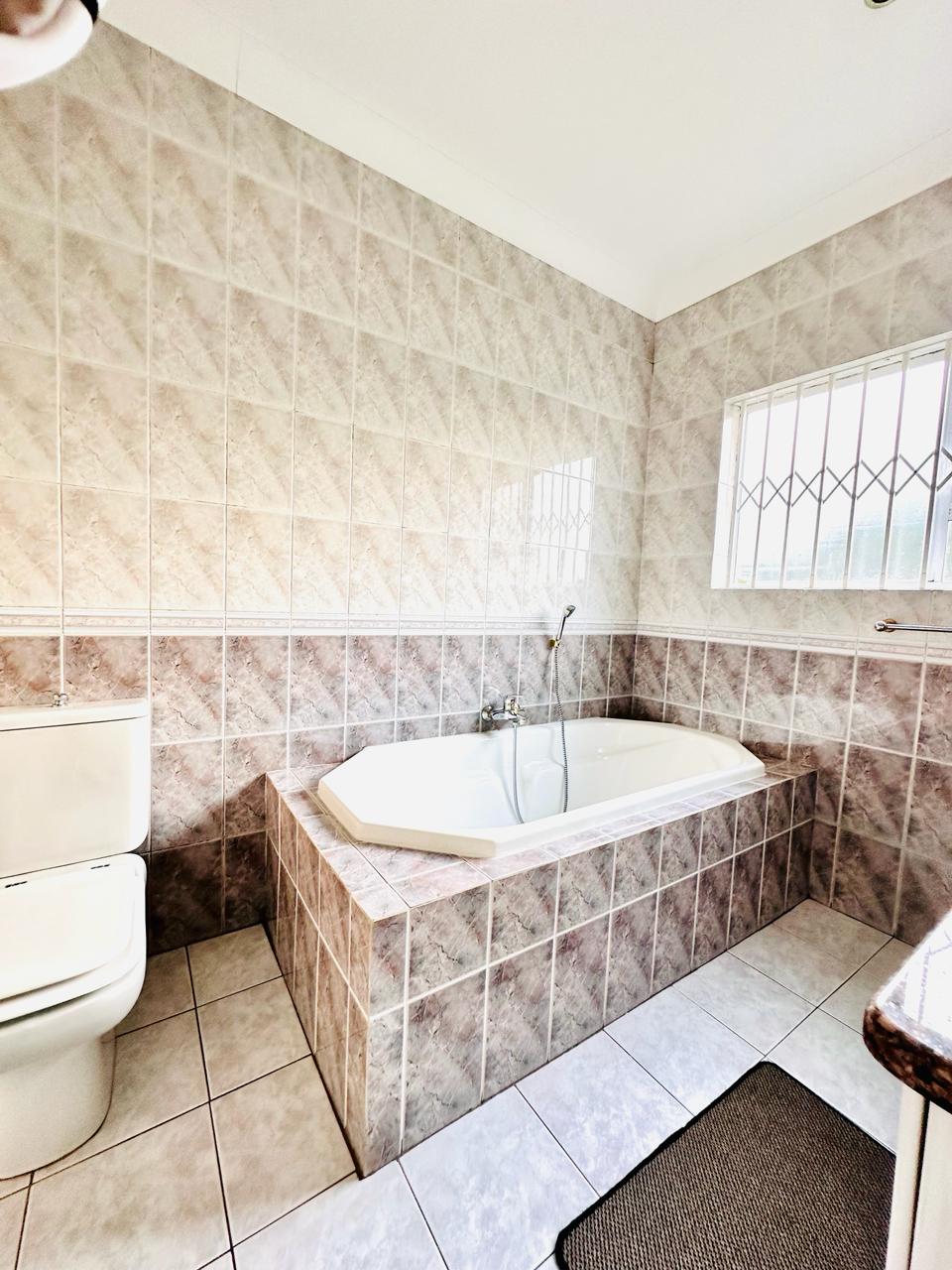 Bedroom 3 is carpeted, built in cupboard, ensuite with full bathroom, toilet, shower and bath.