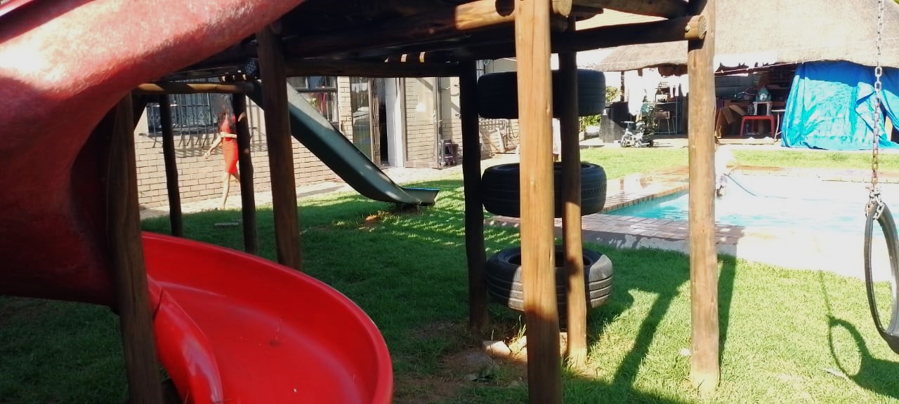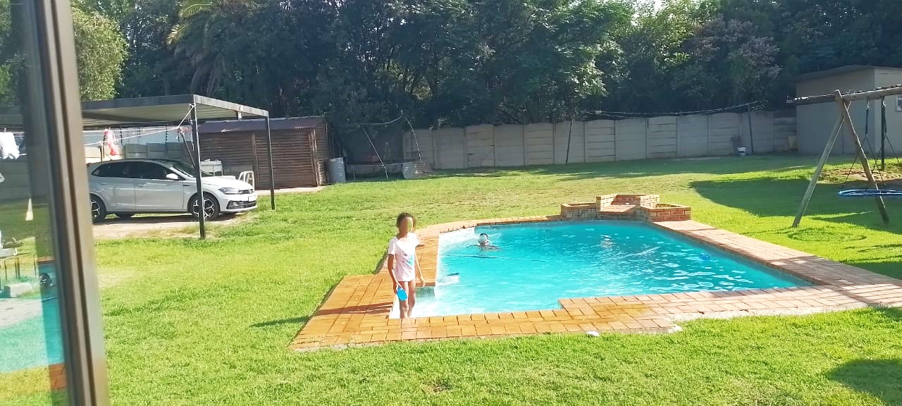 Enhancing the property’s appeal, the outdoor area includes a warehouse-style garage, a refreshing swimming pool, a well-maintained garden, and a dedicated braai corner for entertaining.