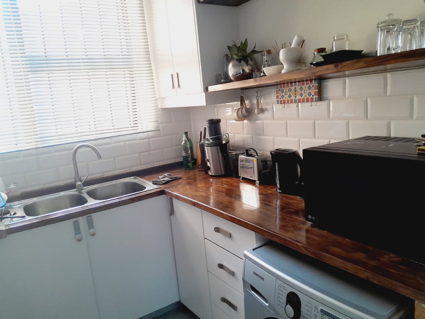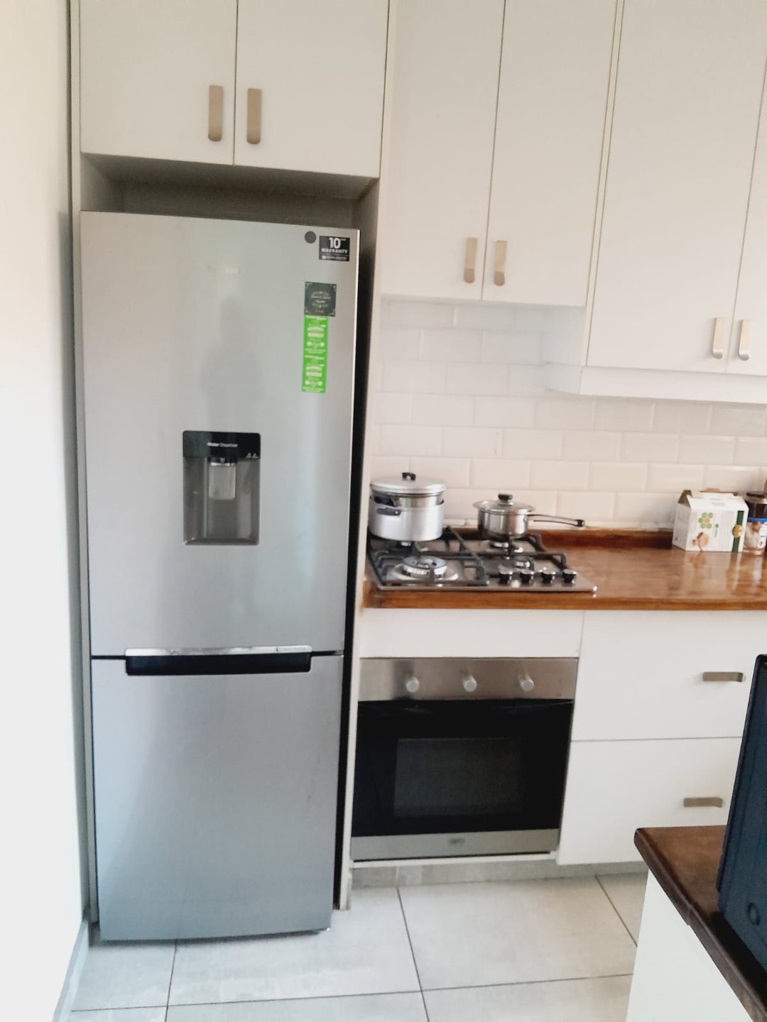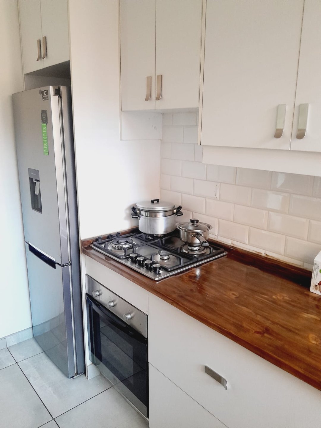 This apartment is above the ground floor as it offers stunning scenery. It has an entrance hallway, and a spacious lounge that leads out onto the balcony, the lounge has ample natural lighting it that can be used for family gatherings or having guests over. The kitchen is separate from the lounge, it has built-in-cupboards, a 4-plate stove (is gas hub, which is perfect for loadshedding) with an oven and space for a fridge and washing machine, this kitchen is every young couples dream kitchen in terms of accessibility and convenience.