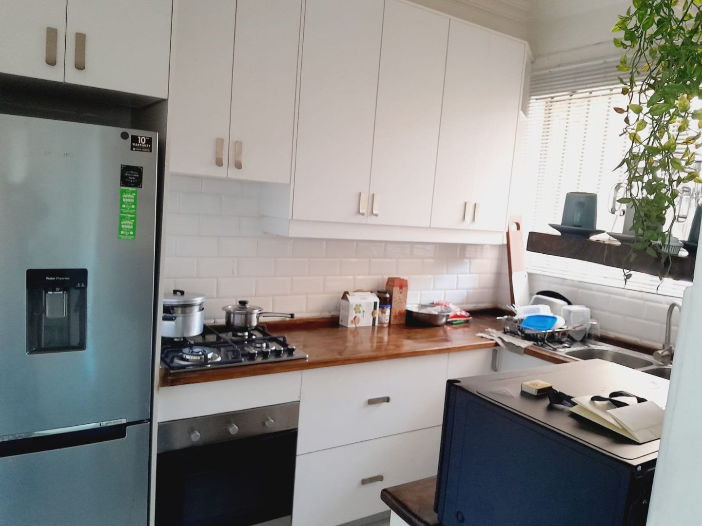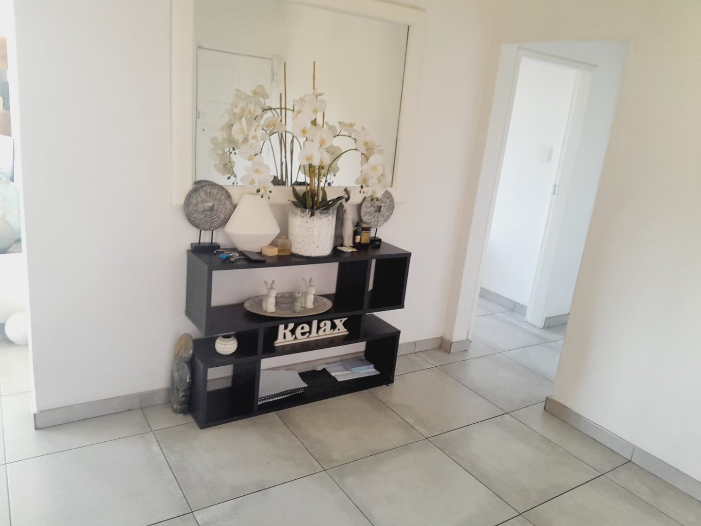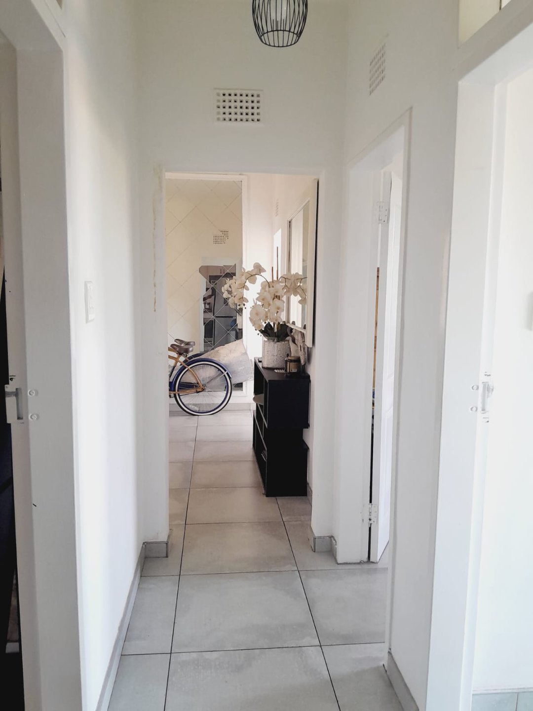 This apartment is above the ground floor as it offers stunning scenery. It has an entrance hallway, and a spacious lounge that leads out onto the balcony, the lounge has ample natural lighting it that can be used for family gatherings or having guests over. The kitchen is separate from the lounge, it has built-in-cupboards, a 4-plate stove (is gas hub, which is perfect for loadshedding) with an oven and space for a fridge and washing machine, this kitchen is every young couples dream kitchen in terms of accessibility and convenience.