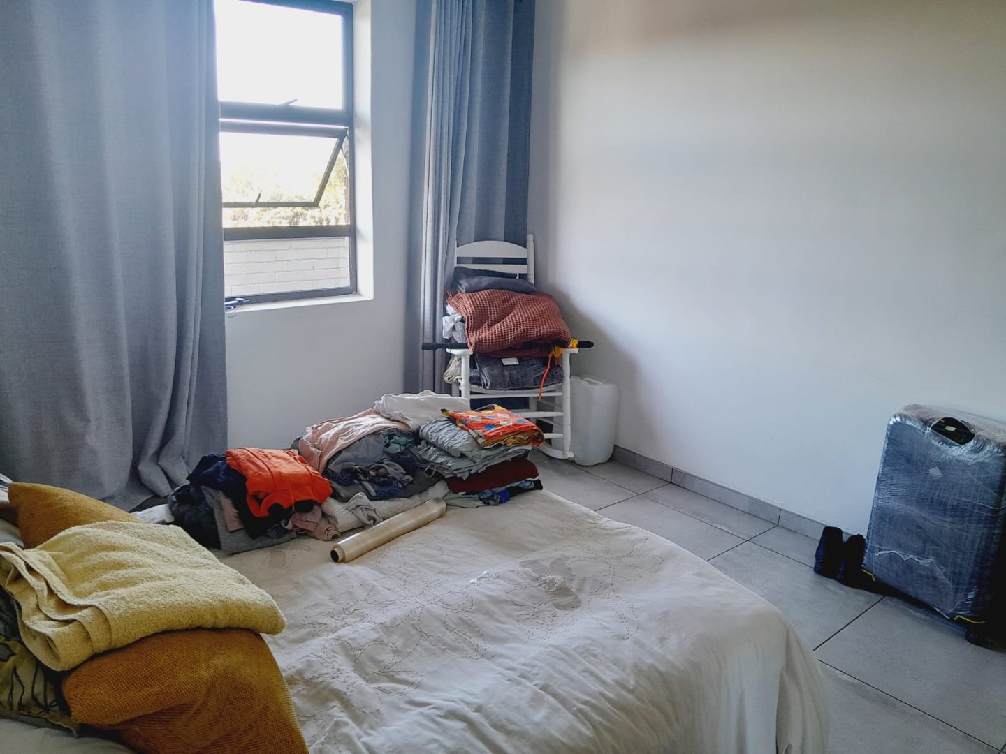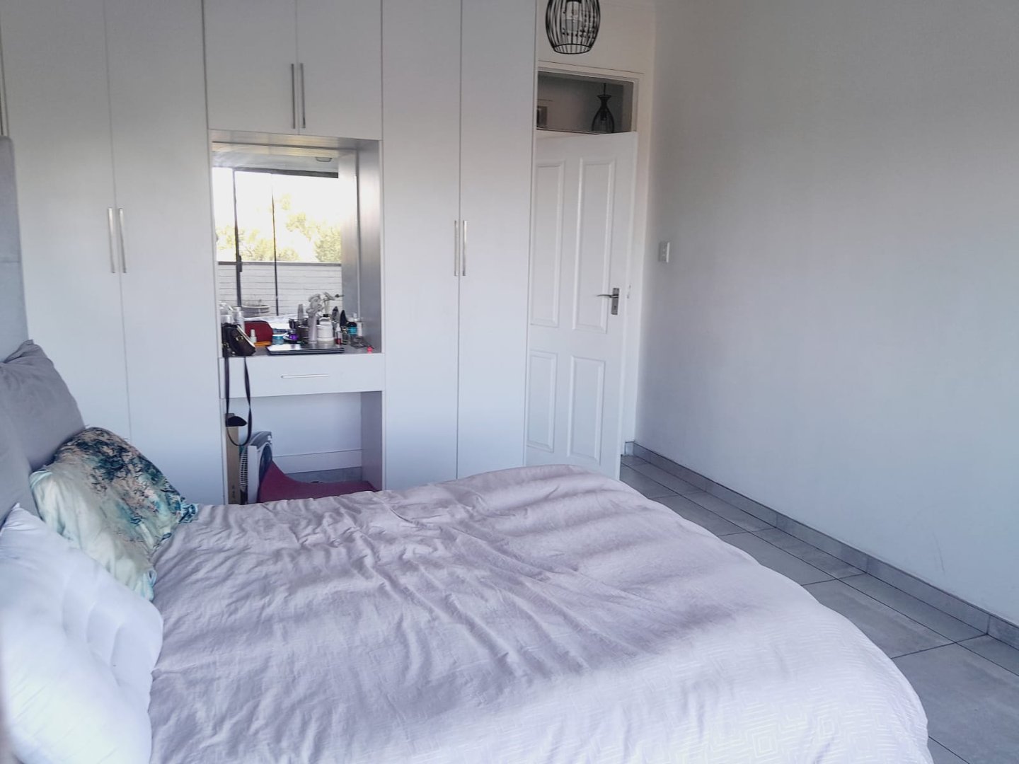 There are 2 bedrooms, the main bedroom has built-in-cupboards that leads out on the balcony and curtain rails, the 2nd bedroom has curtain rails and built-in-cupboards. There is a full bathroom (has a shower, toilet and basin).