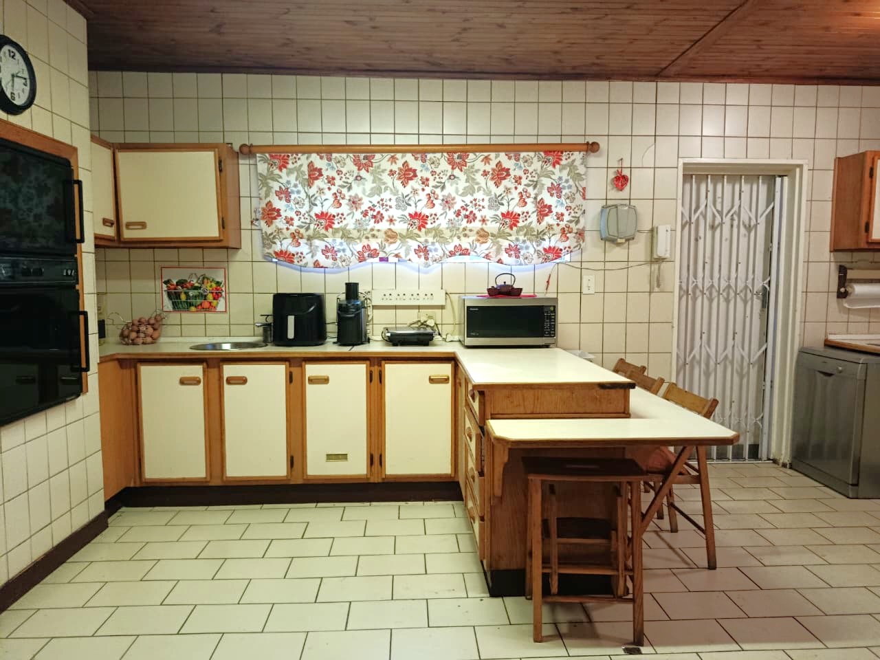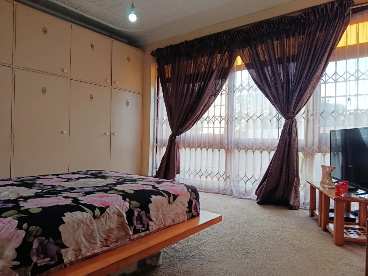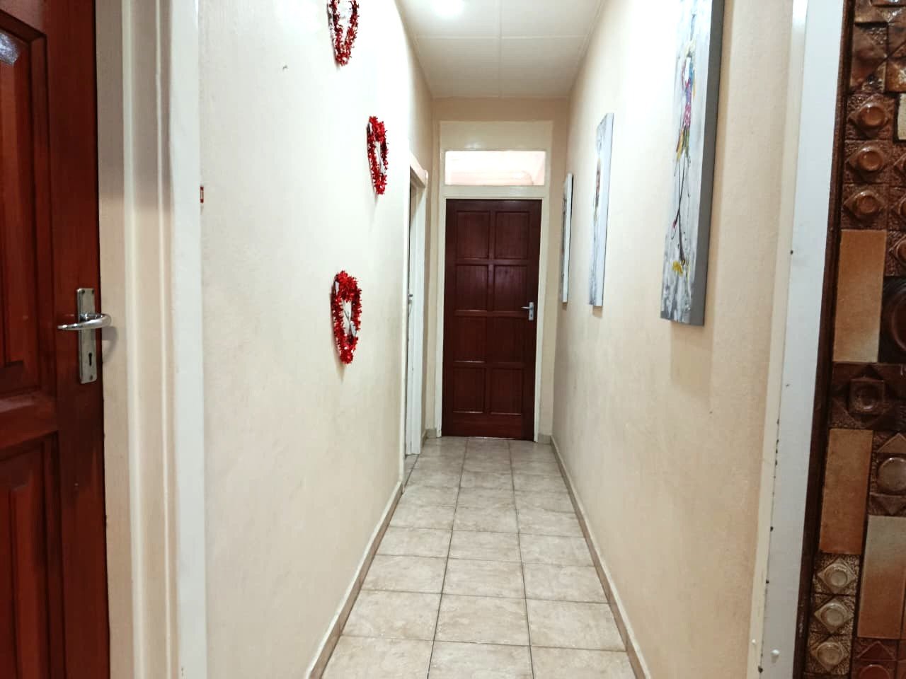 There are three bedrooms, all fitted with built-in cupboards, providing convenient storage. The home also includes a storeroom or mini studio, ideal for additional storage or a creative workspace.