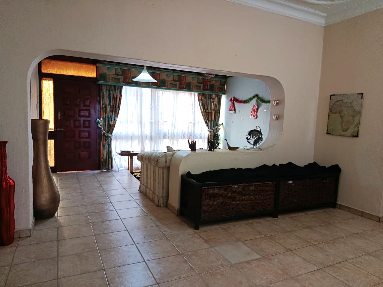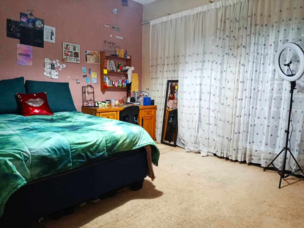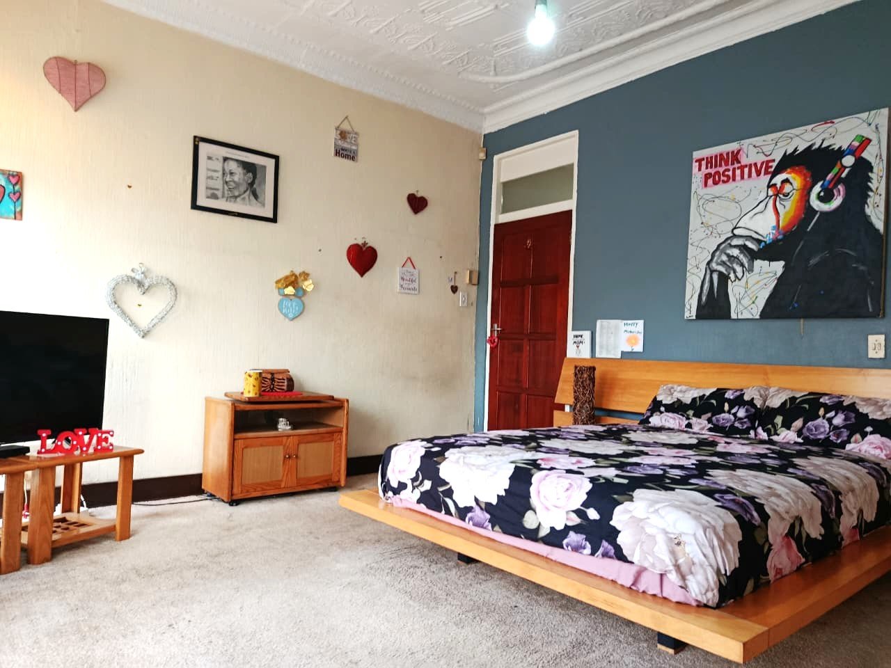 There are three bedrooms, all fitted with built-in cupboards, providing convenient storage. The home also includes a storeroom or mini studio, ideal for additional storage or a creative workspace.